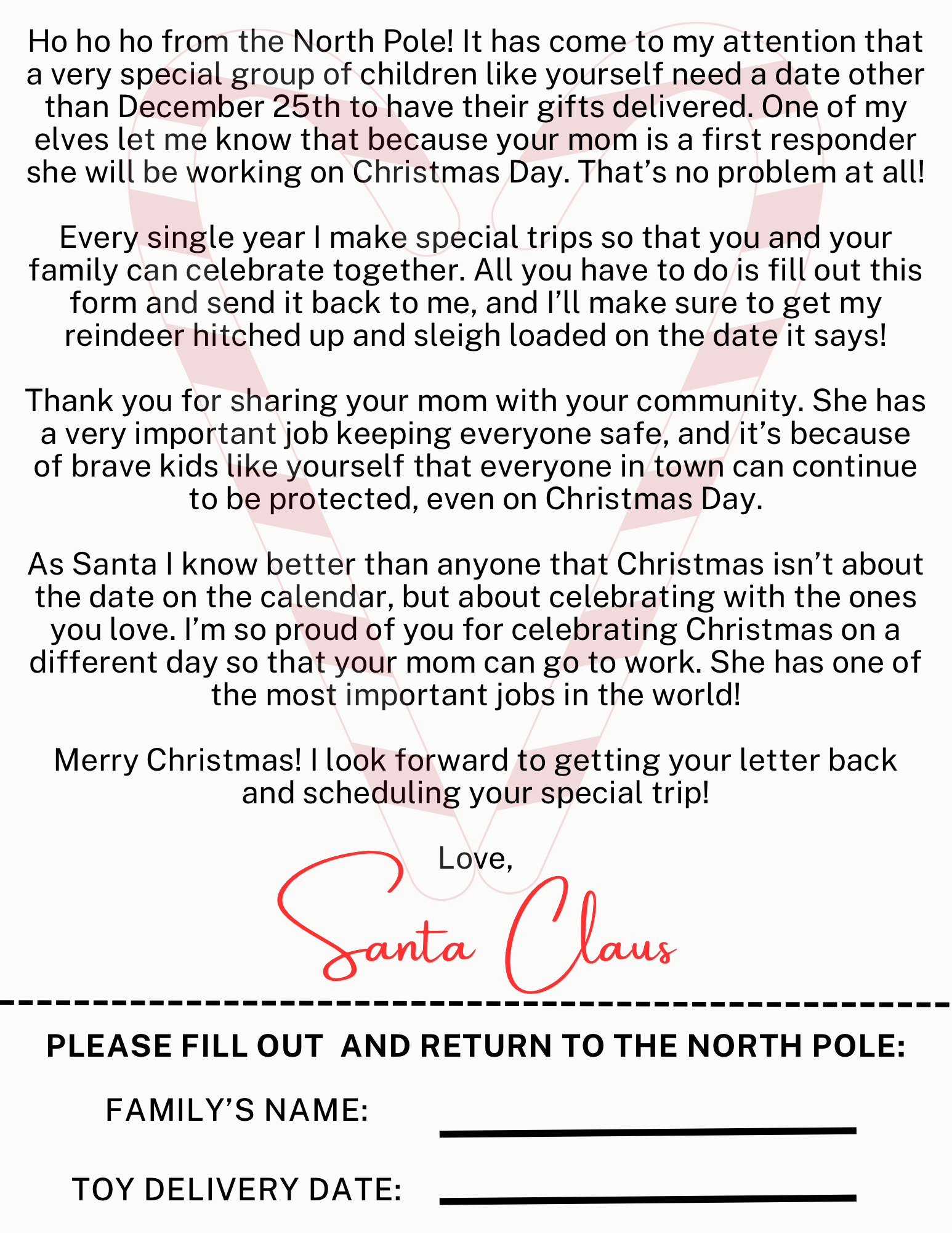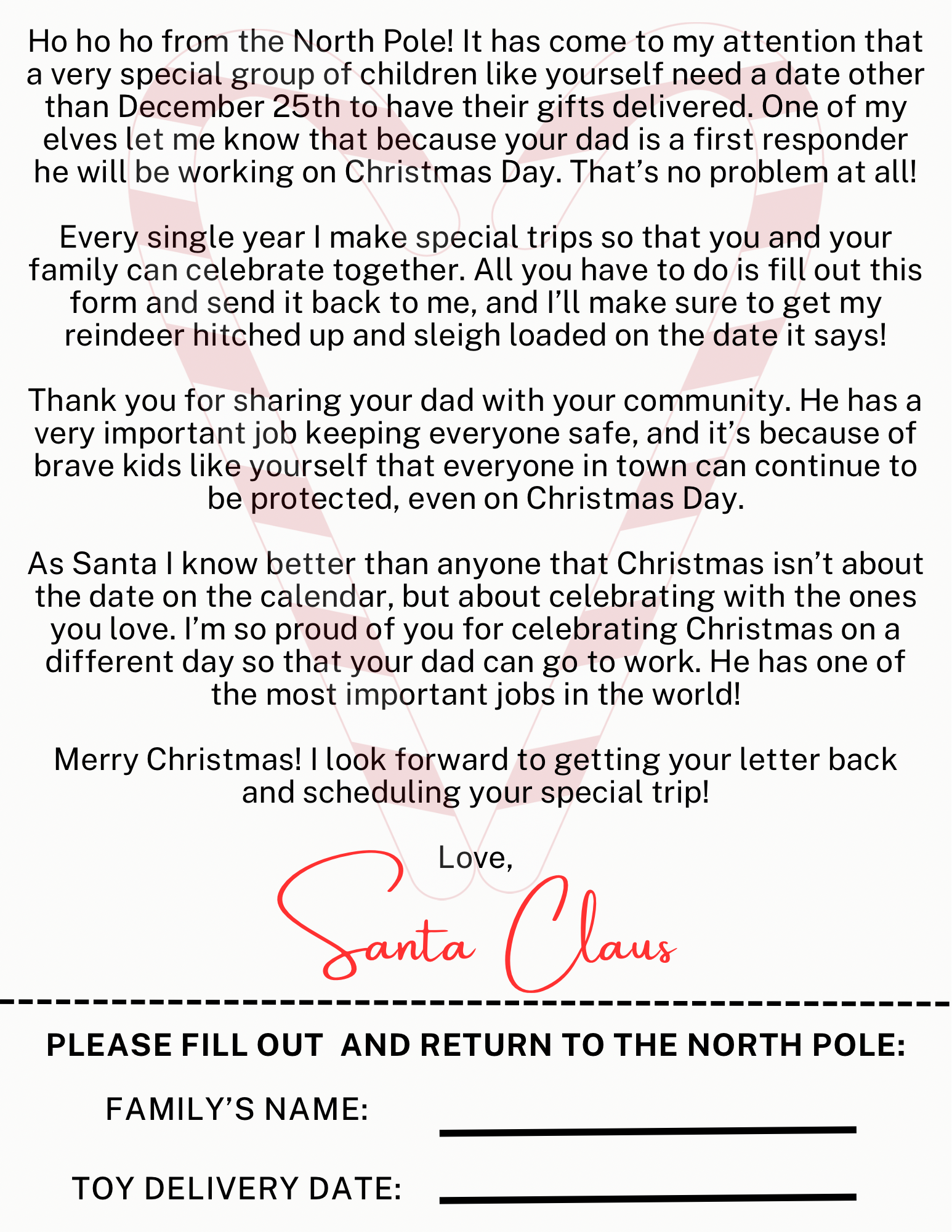 Below are the Santa letters I made for our blue families as well as a more general one for our first responder families. There are versions for both moms and dads! Simply download the one you want and print it out. Merry Christmas!